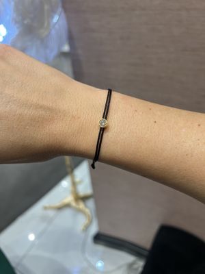 Love Lab 0.05ct Round Brilliant Cut Lab-Grown Diamond Brown Nylon Cord Bracelet - Gold Setting